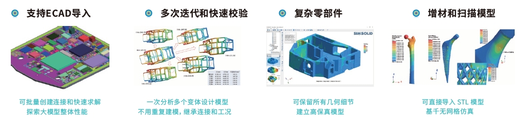 SimSolid可以分析传统有限元难以分析的复杂零件和大型装配体,只需使用普通计算机即可高效完成计算。SimSolid计算速度快而且准确,其精度控制方法使用了SimSolid独创的多通道自适应分析控制策略。